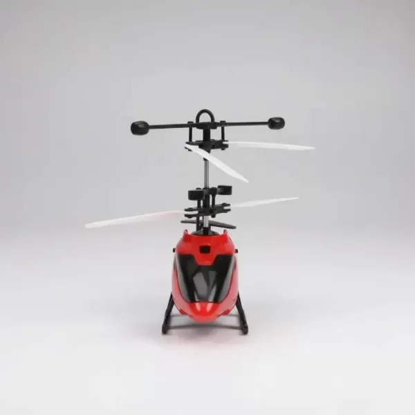Helicóptero recargable por cable v8. Tiene luces. Usa tecnología de inducción infrarroja, con la ue detecta la precesia de la mano, al apoyar el helicoptero sobre la misma, y se eleva.
