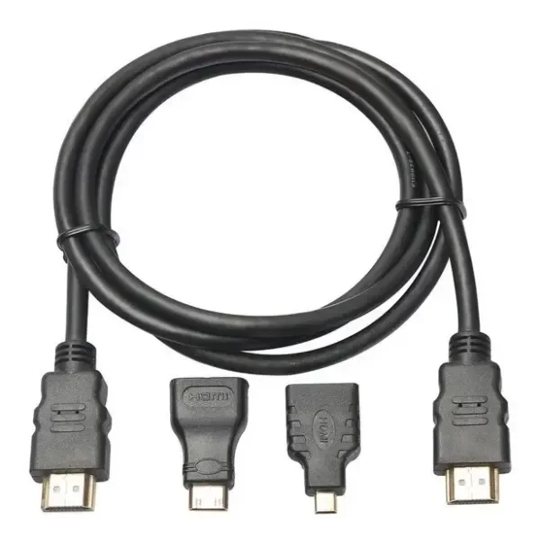 CONTIENE: CABLE HDMI 1,50MTS - ADAPTADOR MINI HDMI - ADAPTADOR MICRO HDMI.